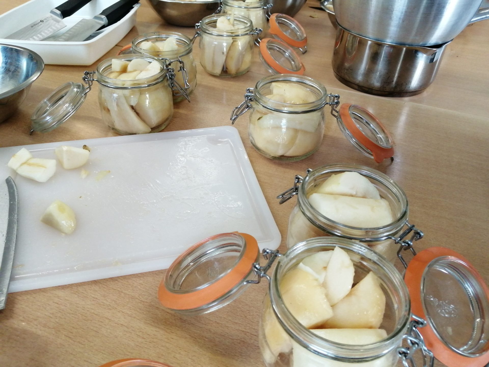 Samuel, référent sur la structure de l’EGT nous a gentiment convié pour réaliser 3 recettes : soupe de citrouille, poire au sirop et ananas au sirop.