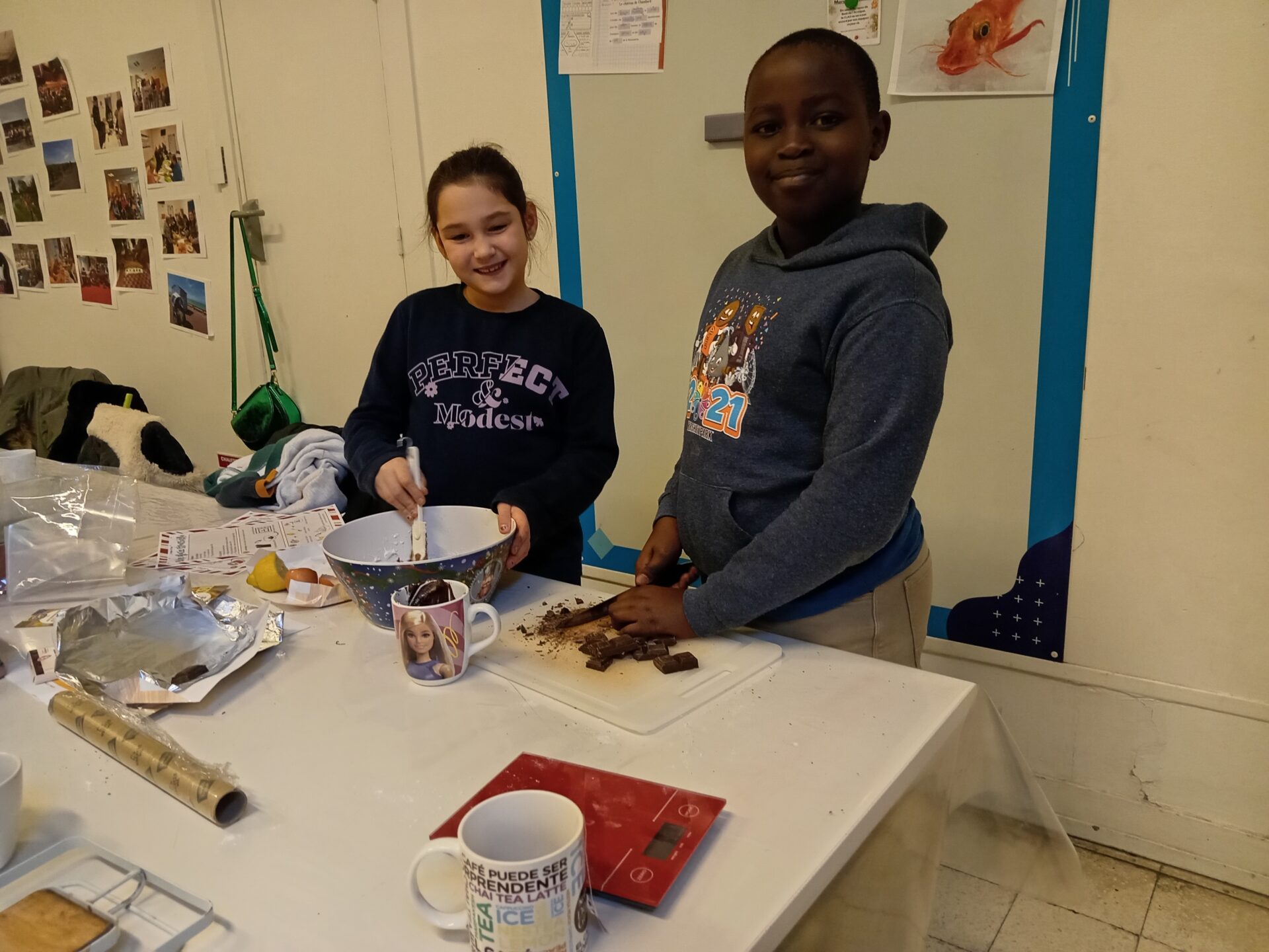 Nous avons passé un excellent moment autour de la fabrication de délicieuses bûches glacées au goût stracciatella, préparées pour le repas de Noël du mardi 16 décembre.