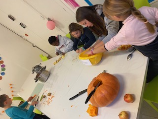 Ce jeudi 27 octobre, les jeunes du secteur 8/13 ont travaillé sur des citrouilles afin de les rendre monstrueuses. Ils ont ensuite mixé des pommes de terre, des carottes et de la citrouille pour faire de la soupe.