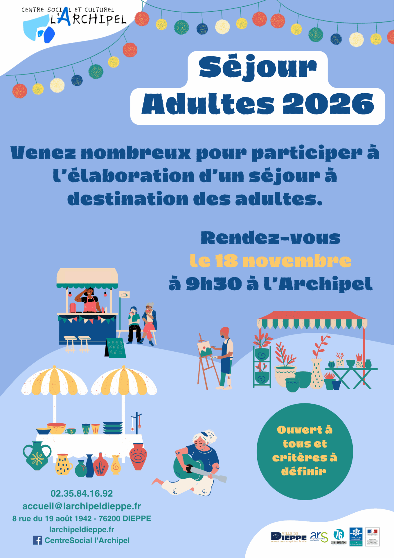 Venez nombreux le mardi 18 novembre 2025 à 9h30 à l’Archipel pour un temps d’échange et participer à l’élaboration d’un séjour/week-end à destination des adultes. Le séjour est à réfléchir et créer ensemble alors nous vous attendons!