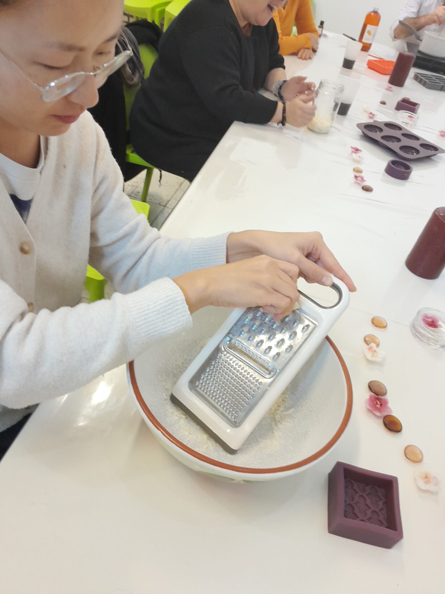 Tous se sont impliqués dans la customisation de leur savon en choisissant des huiles essentielles, un colorant ou un moule différent.