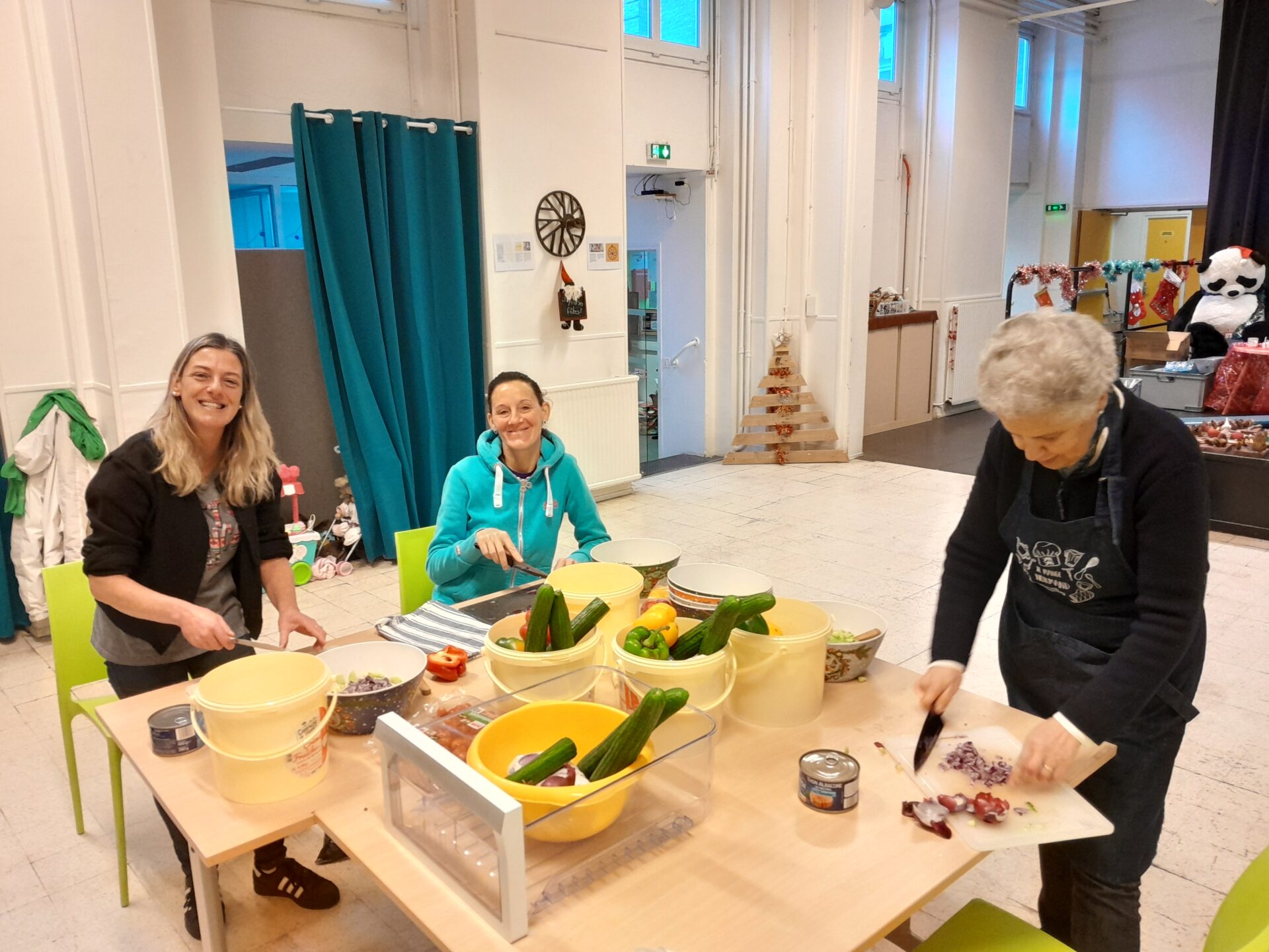 Les adhérents du Centre Social se sont réunis à l’Archipel pour préparer les entrées de notre repas de Noël de ce mardi 16 décembre au soir. C’est dans une ambiance festive que nous continuons à cuisiner. La suite ce soir à la salle des congrès!