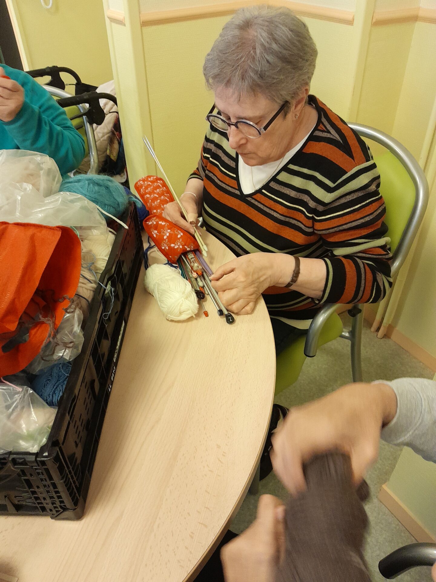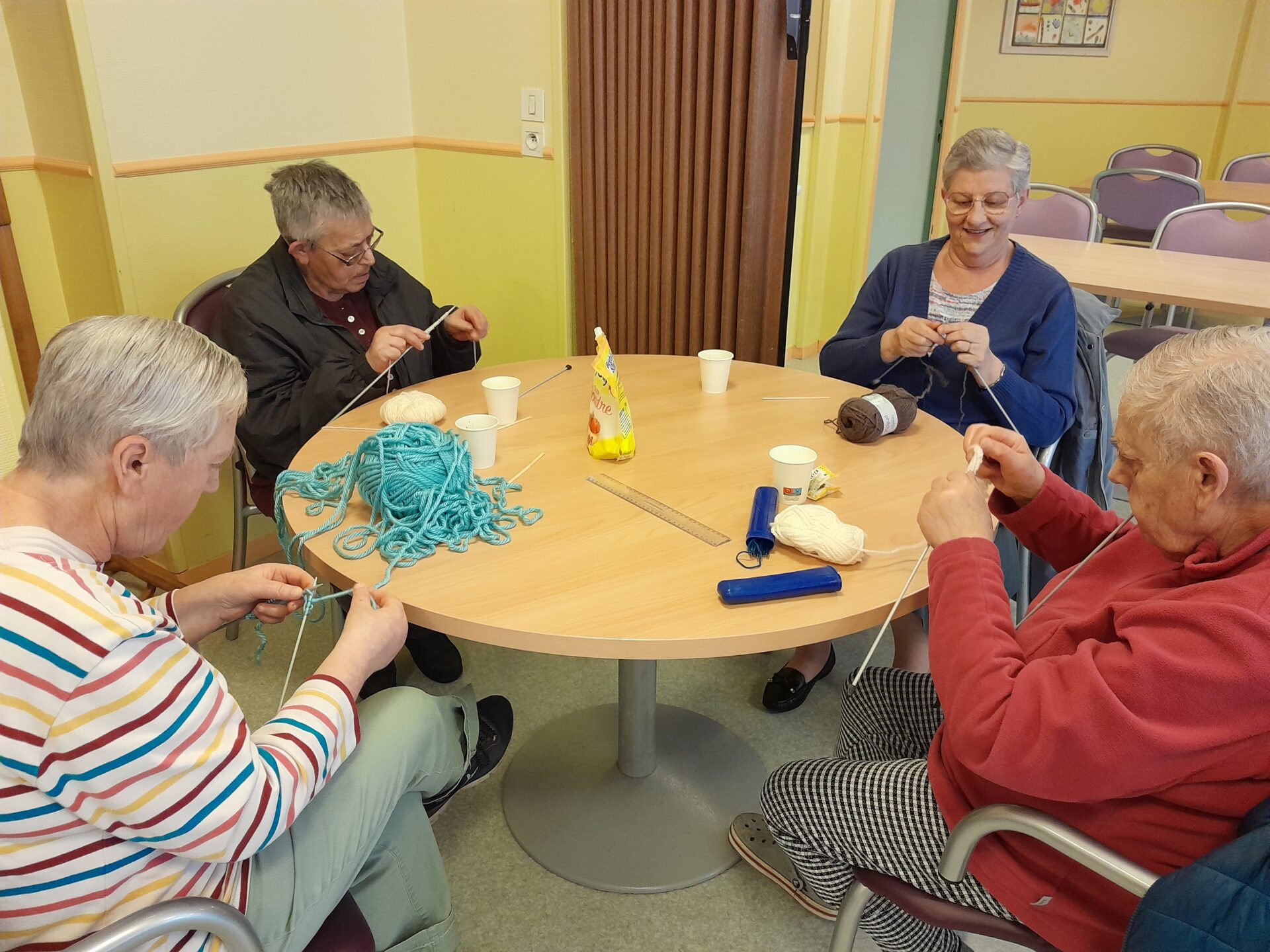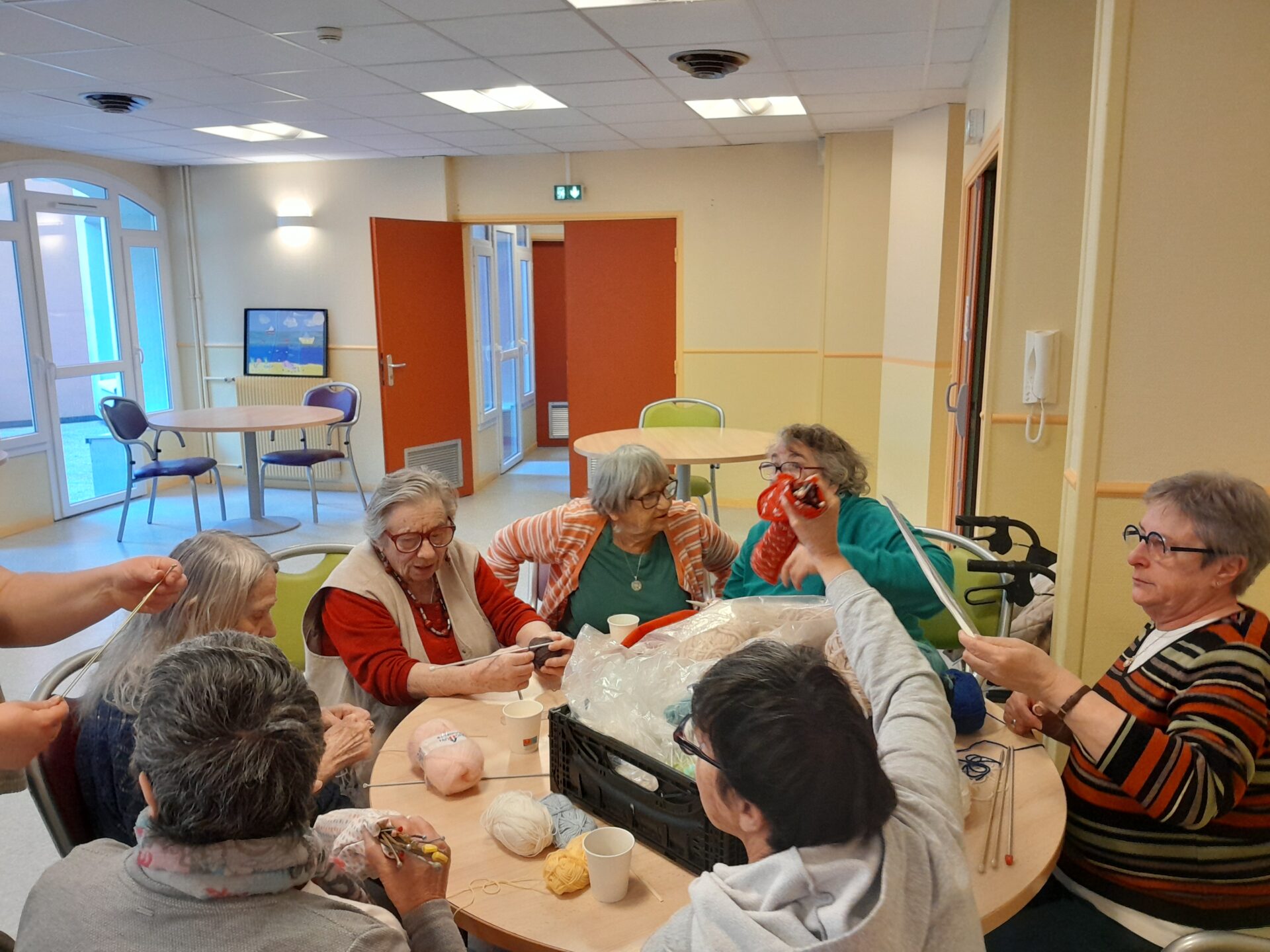 Des familles et des adultes de l’Archipel sont venus à la résidence autonomie Marcel Paul pour un atelier artistique. Au choix chacun pouvait soit faire des petits carrés de laine pour l’association » Tricote un sourire » soit faire des fleurs en papier pour le carnaval de Dieppe.
