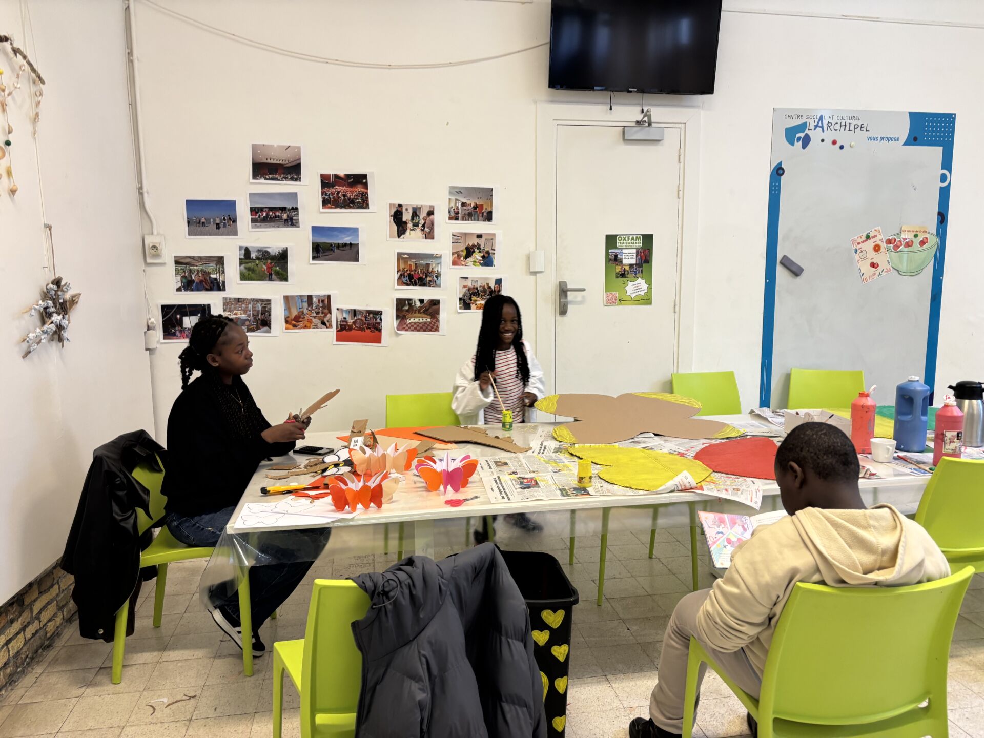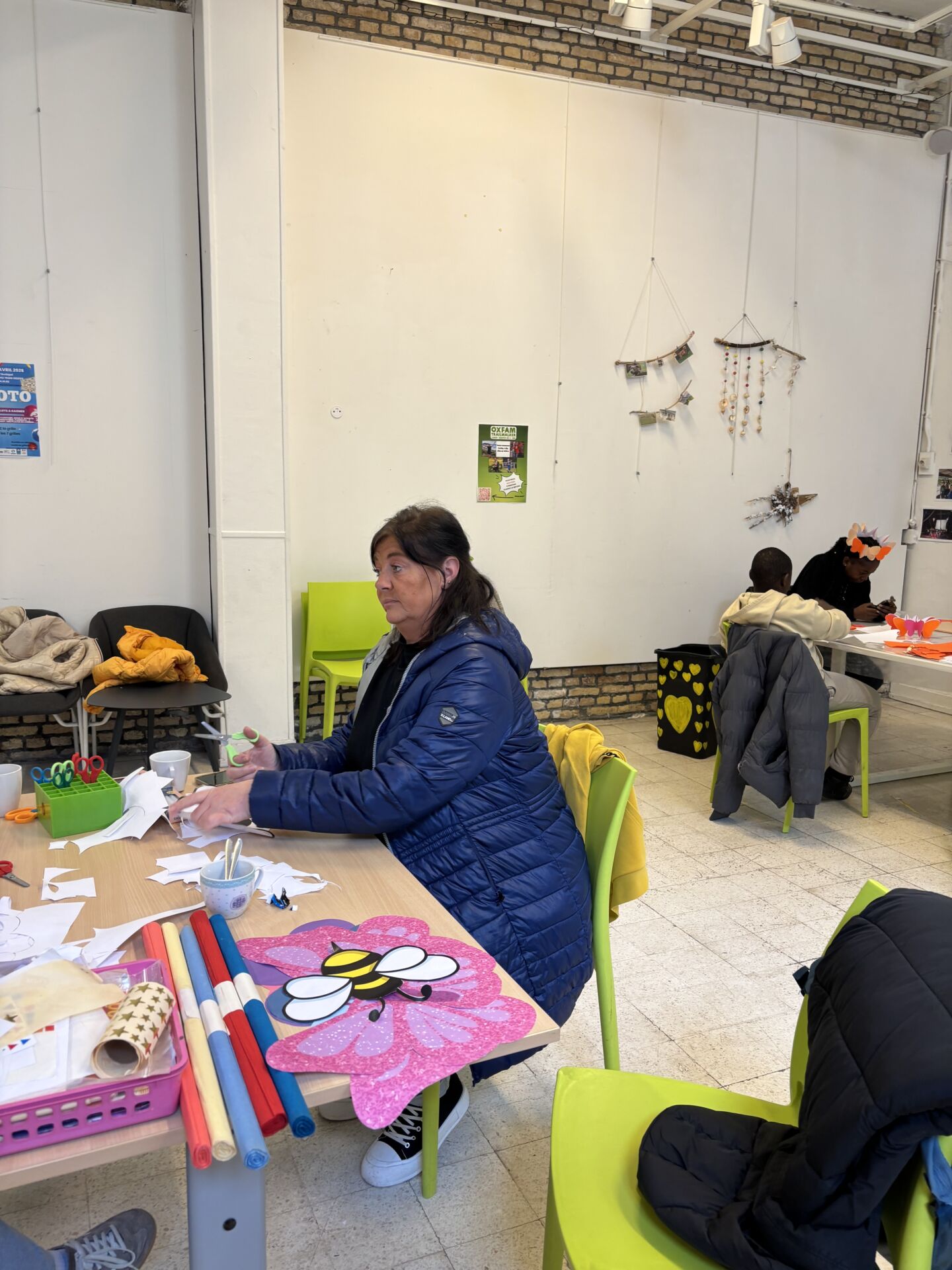 Cet après-midi, nous avons continué nos créations de papillons pour le Carnaval de Dieppe. Ont participé le centre de loisir des 8/11 ans, une adolescente, des adultes et des familles. Journée rayonnante, pleine de bonne humeur et de convivialité autour de cette activité créative.